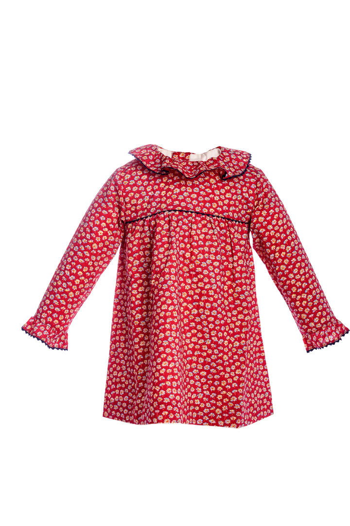Vestido de bébé abotoado atrás. Grega na manga, peito e gola. Cueca até aos 2 anos 100% Algodão Made in Portugal